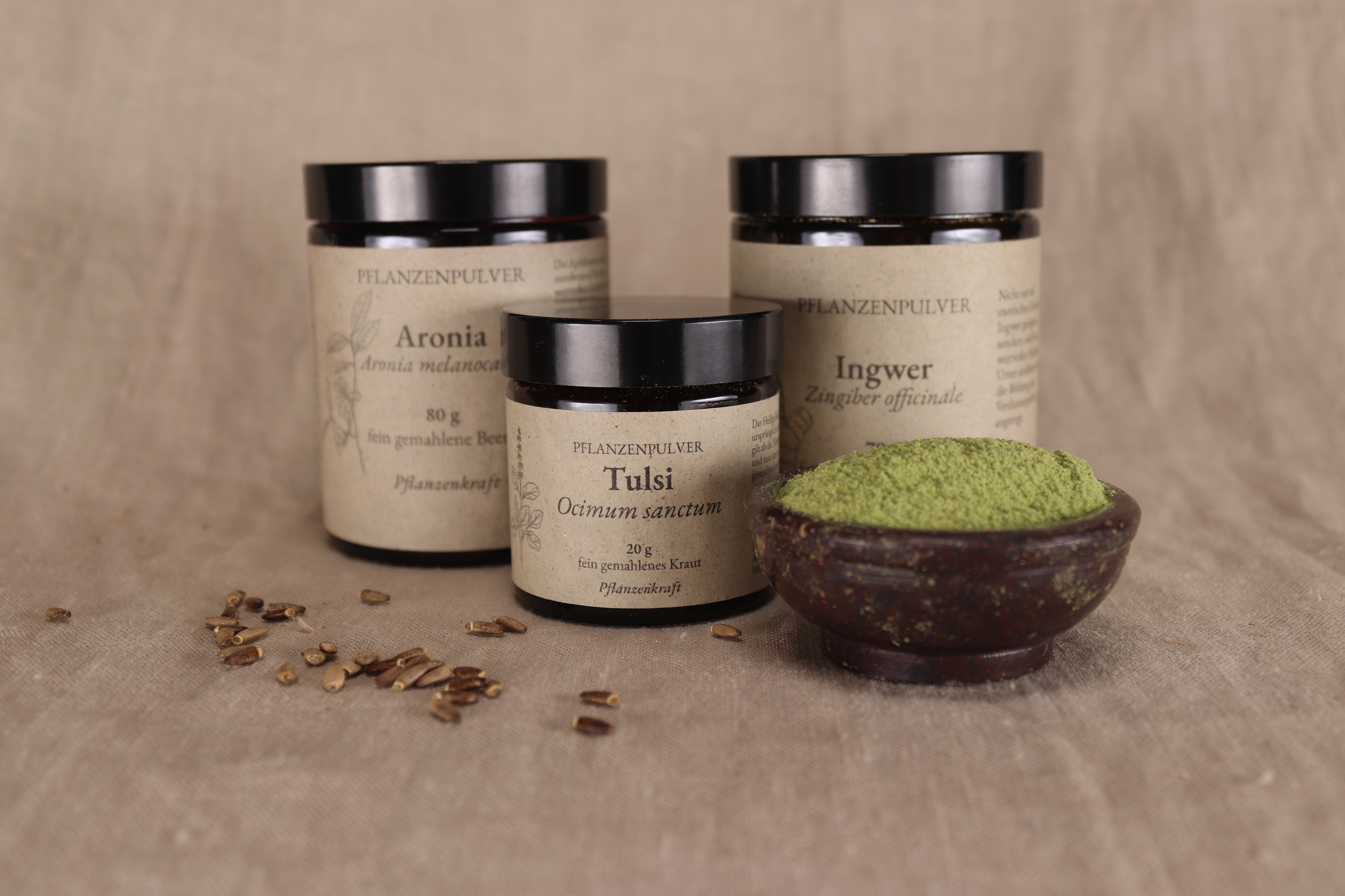 Für diese werden die Samen verschiedener Pflanzen in mechanischen und schonenden Verfahren kalt gepresst und in Kapseln abgefüllt. Das erleichtert die Einnahme und Dosierung bei der Verwendung der Heilpflanzen. Das Sortiment umfasst Ölkapseln aus den Samen von Nachtkerze, Mariendistel, Hanf, Lein und Schwarzkümmel.